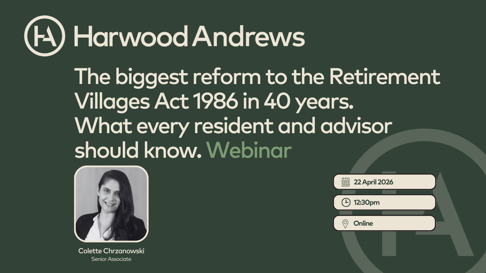 This session will provide practical insights to help you understand the new rules and make informed decisions about retirement village contracts from 1 May 2026 onward