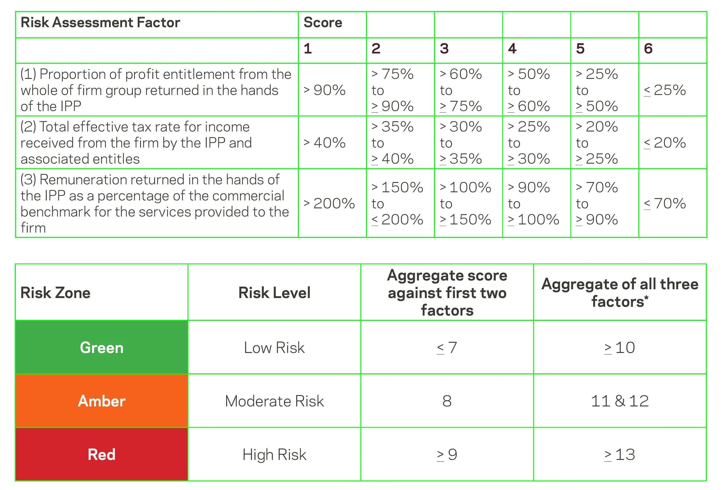 An IPP with an effective tax rate of 30% returning 50% in their own pockets would have satisfied two of the Benchmarks in the Guidelines (the IPP only needed to satisfy one). Under the Draft PCG, assuming the IPP satisfies the two Gateways, the IPP will receive a ‘score of 9’ classifying the IPP as “high-risk”.